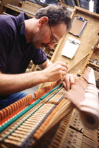 After installation and action regulation, a meticulous voicing of the hammers is completed. This process, involving softening and/or hardening of the hammers, brings out the full tonal beauty and resonance of the instrument.