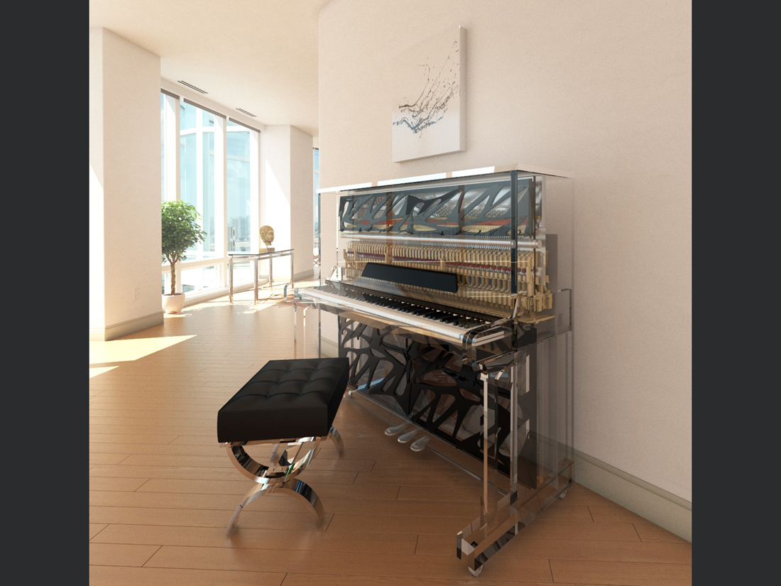The Blüthner Crystal Elegance Panorama suspends your artwork in a structure of space, light and reflection - which also happens to be a world class performance piano.